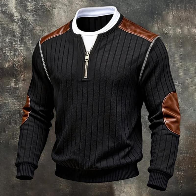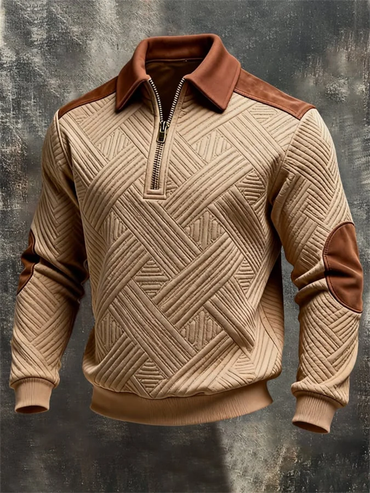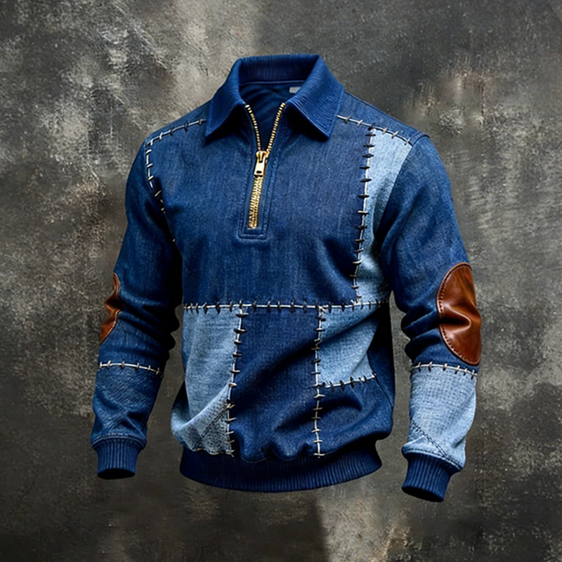 Men's Vintage-style Textured Patchwork Color-block Long-sleeved Sweatshirt