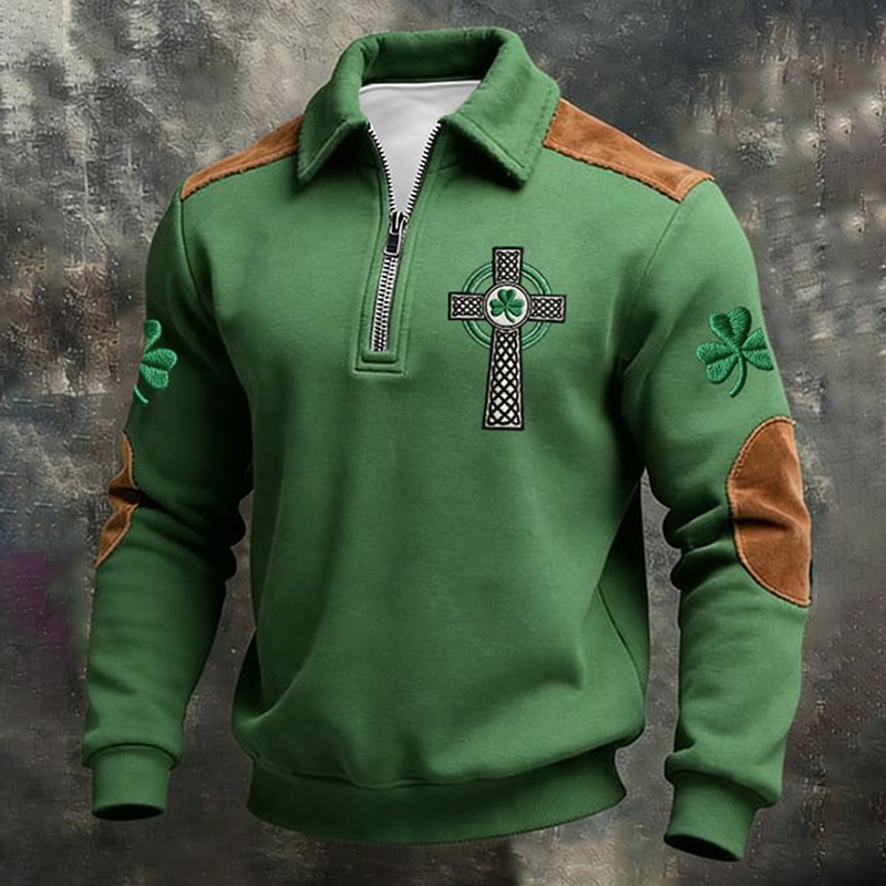 Men's St. Patrick's Day Printed Casual Zipper Sweatshirt
