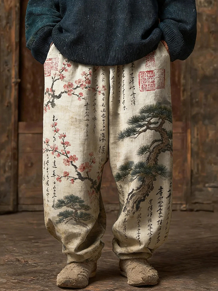 Men's Retro Vacation Business Art Print Casual Workwear Trousers