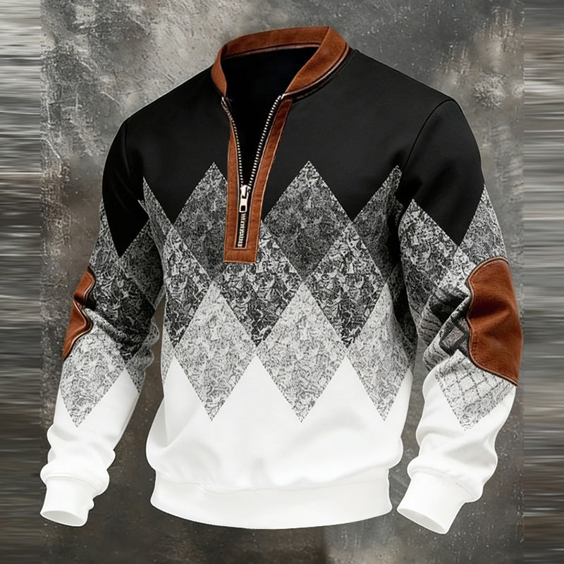 Men's Retro Color-block Print Half Zip Sweatshirt