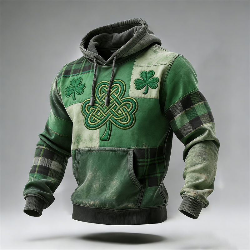 Men's St. Patrick Shamrock Plaid Colorblock Hoodie