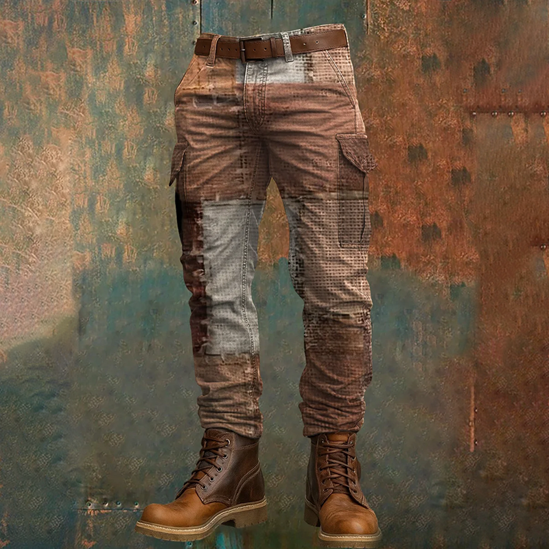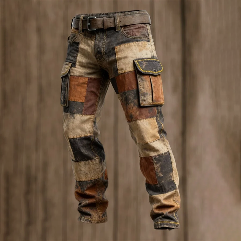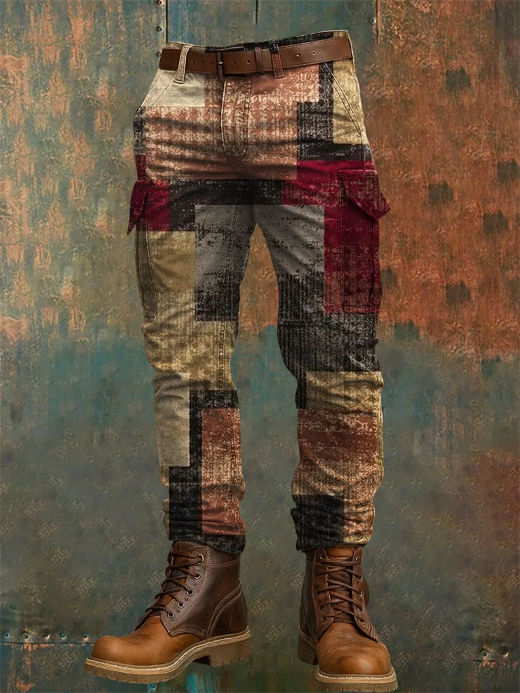 Men's Retro Colorblock Pocket Work Pants