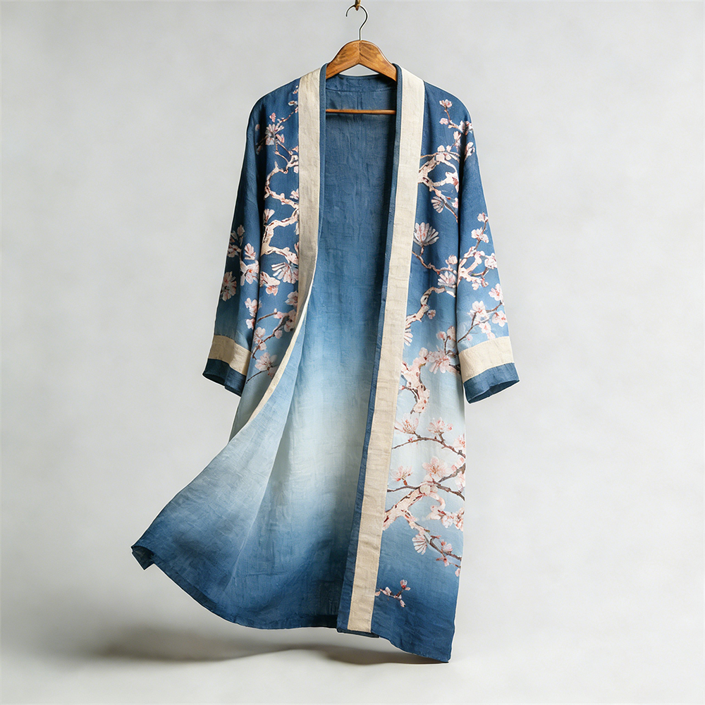 Retro Printed Art Linen Gradient Kimono