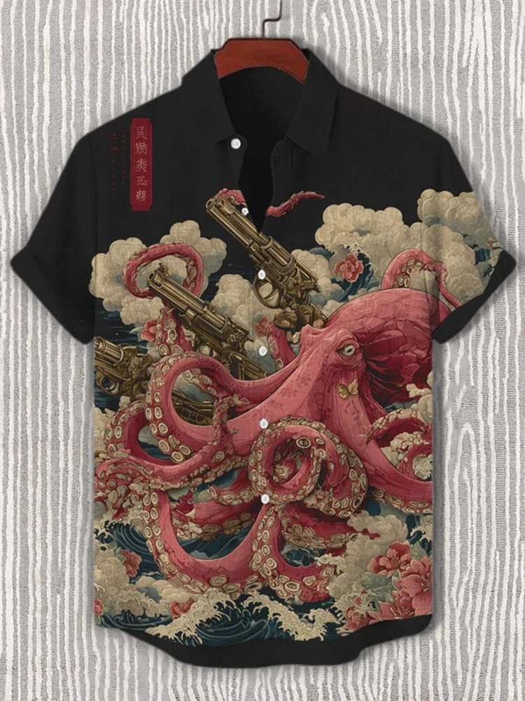 Japanese Art Retro Dragon Pattern Men's Short Sleeve Shirt