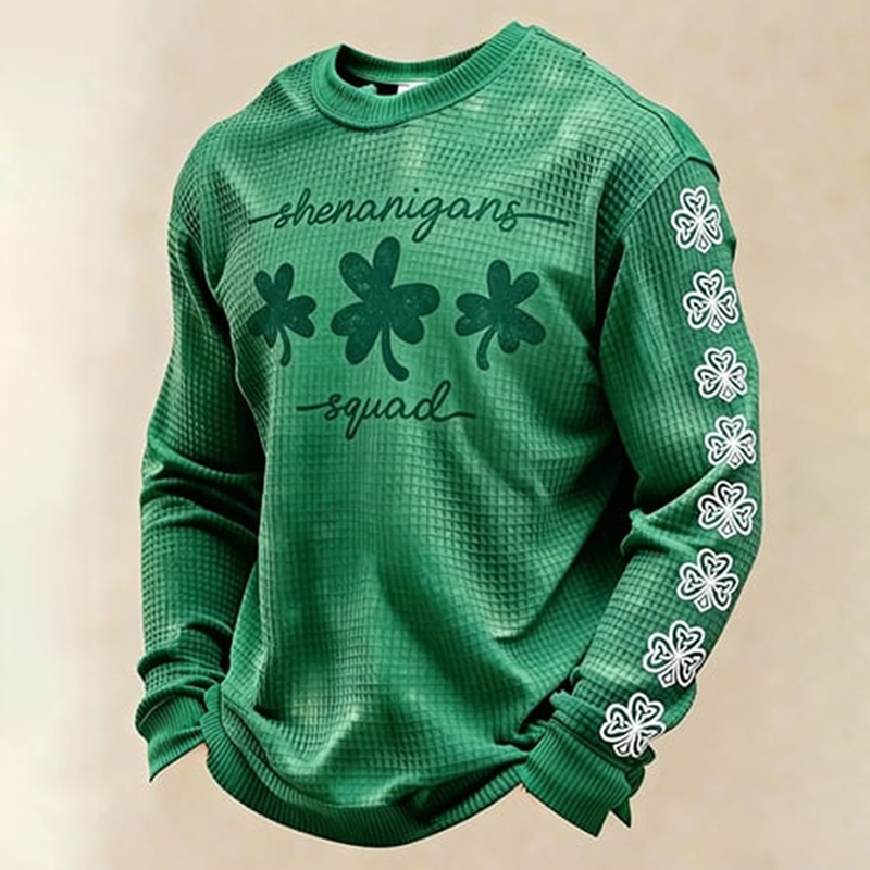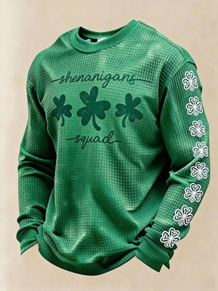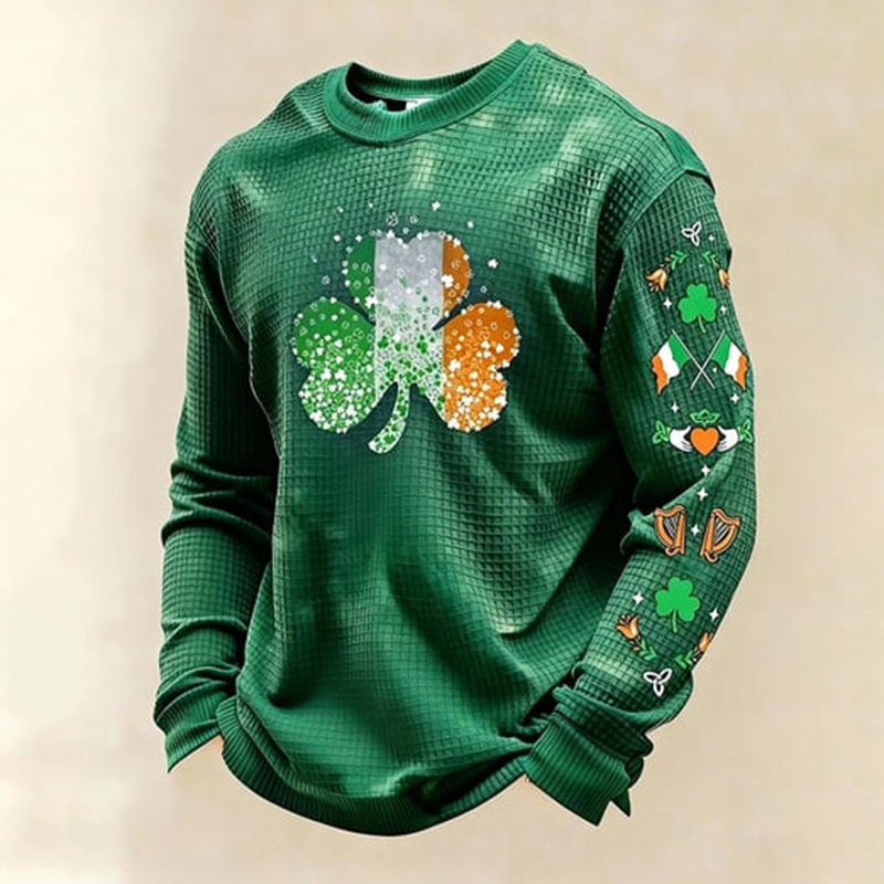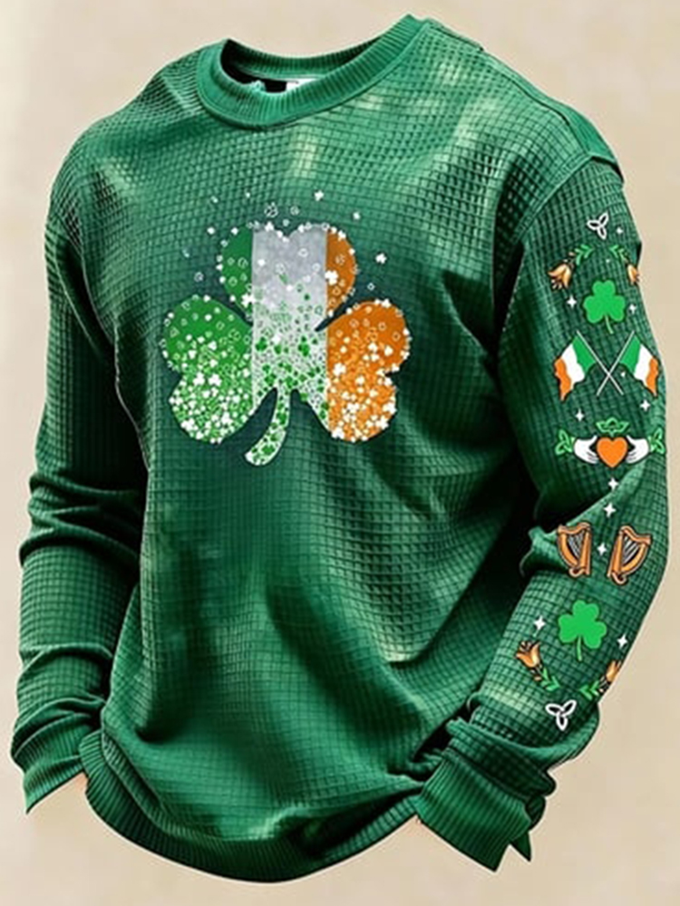 Men's Casual St. Patrick's Day Printed Waffle Hoodie