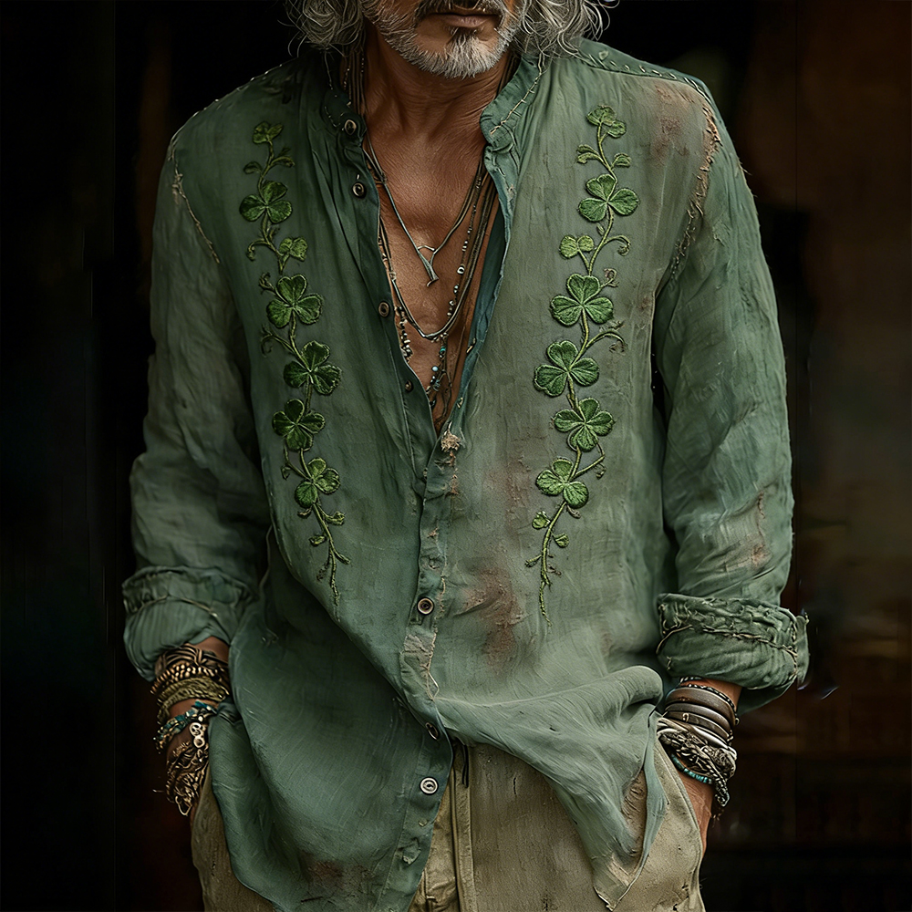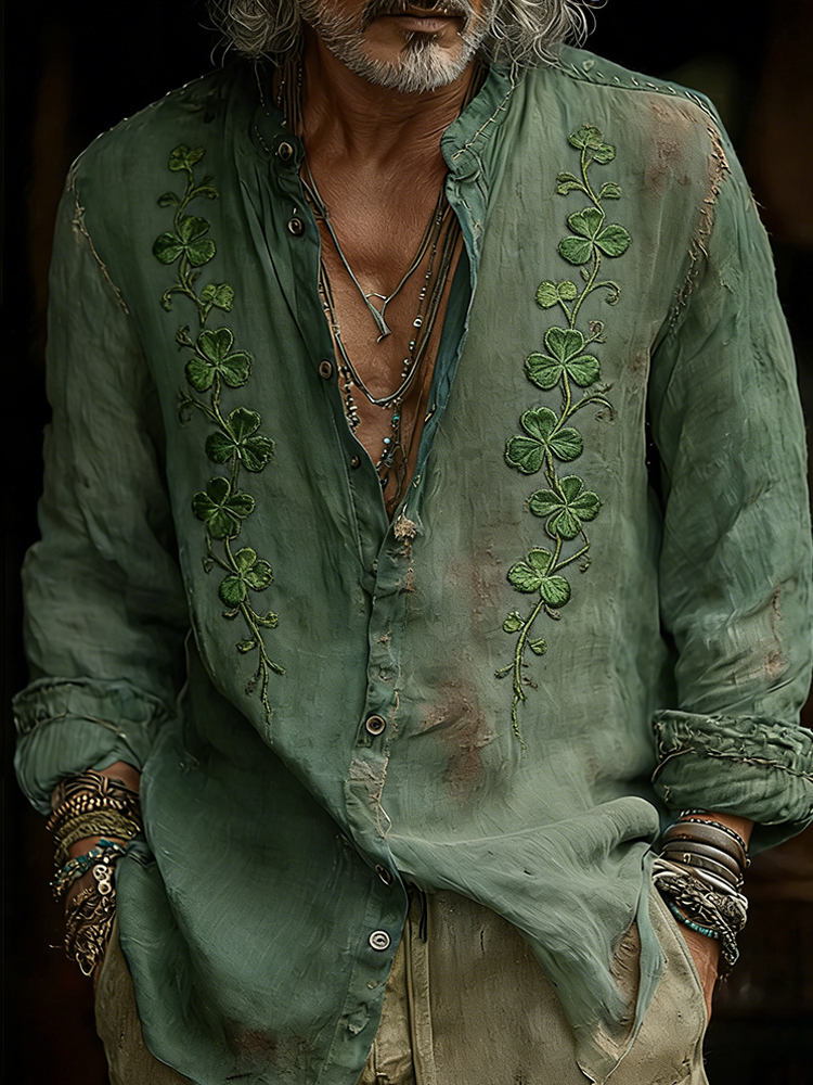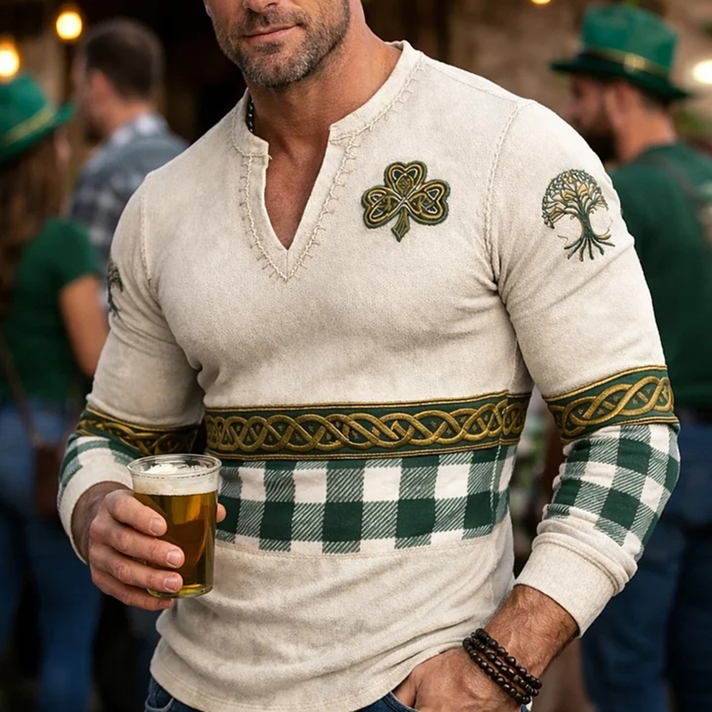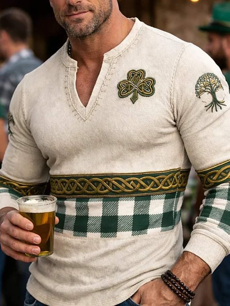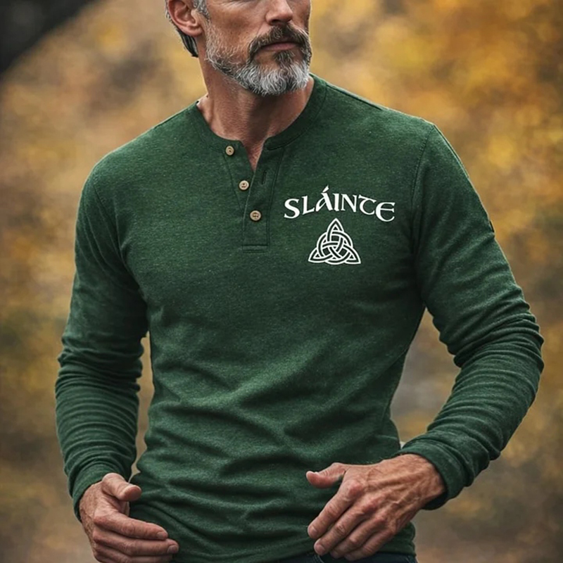 Men's Vintage St. Patrick's Day Print Henley Neck Shirt