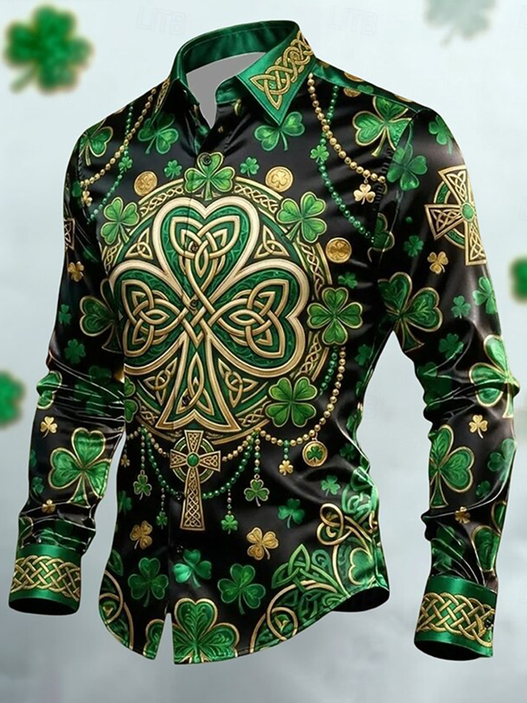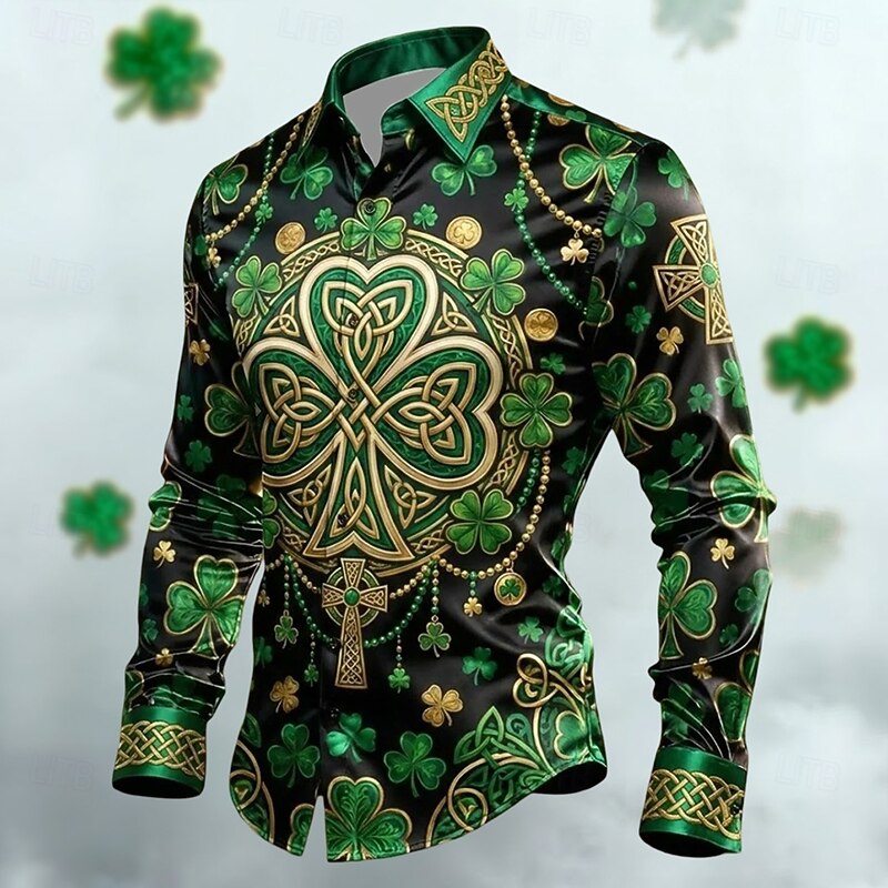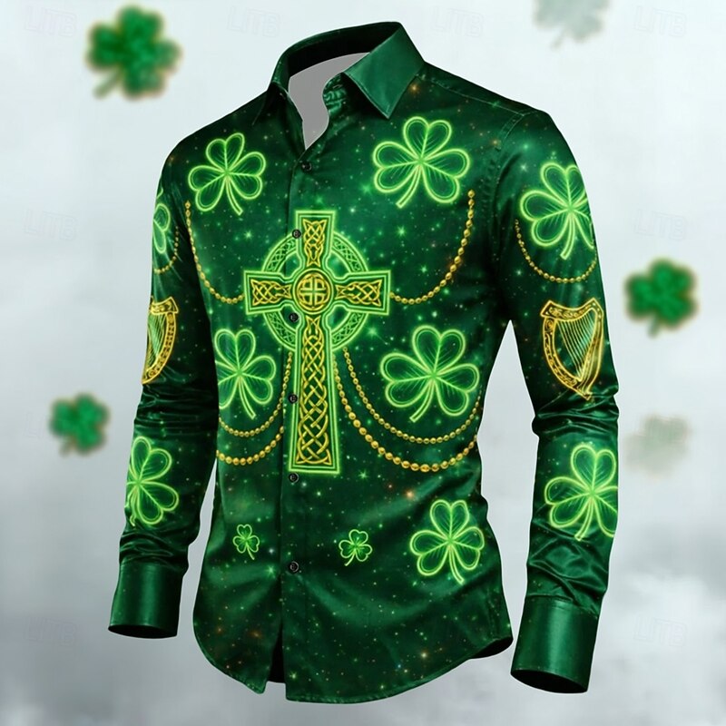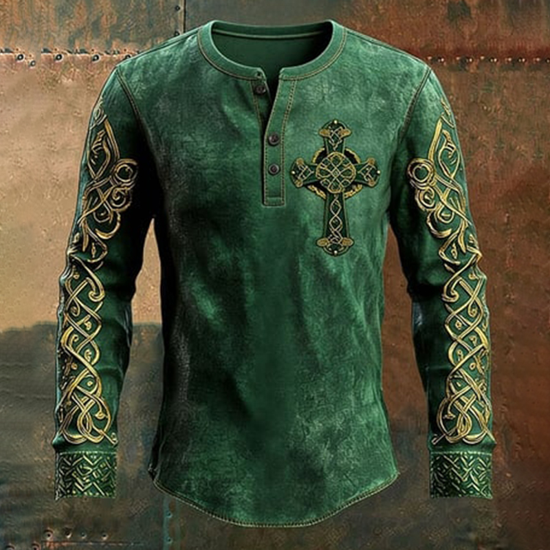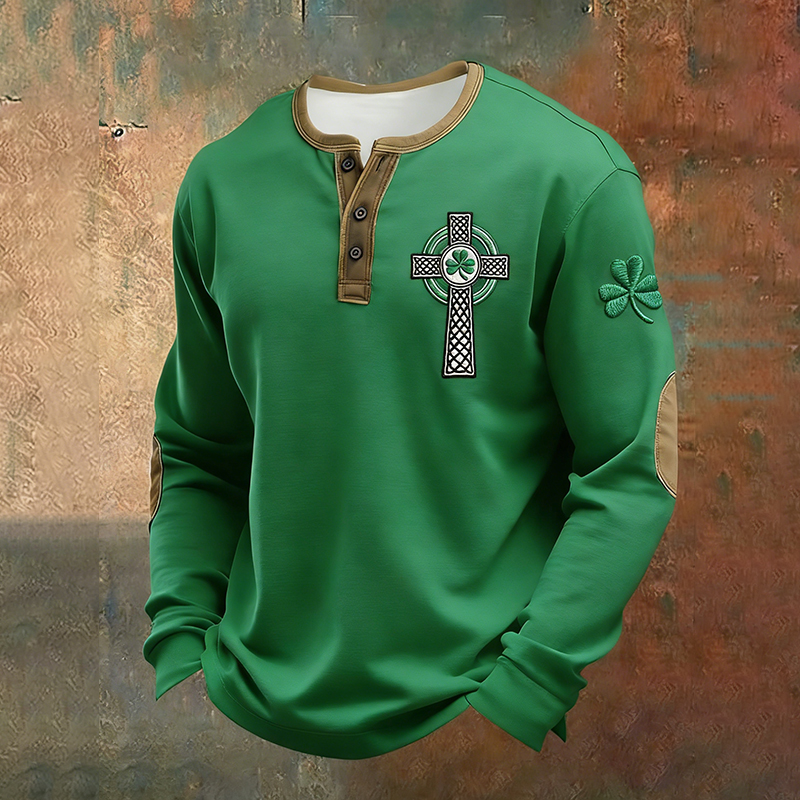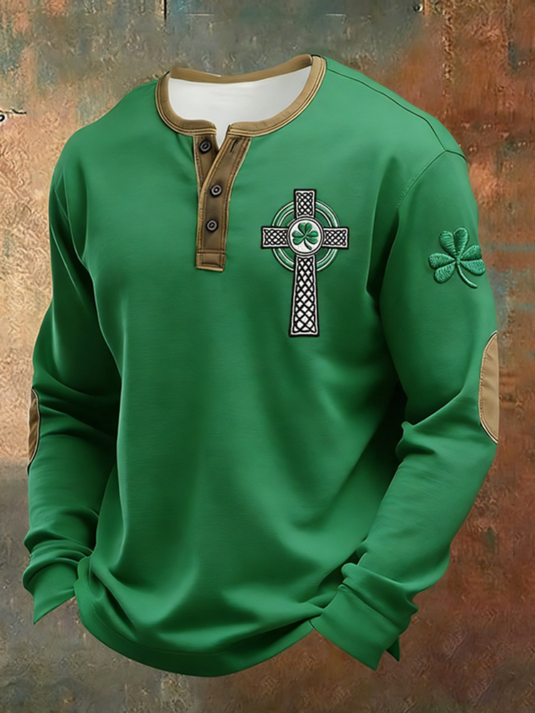 Men's St. Patrick's Day Shamrock Cross Art Long-sleeved Shirt