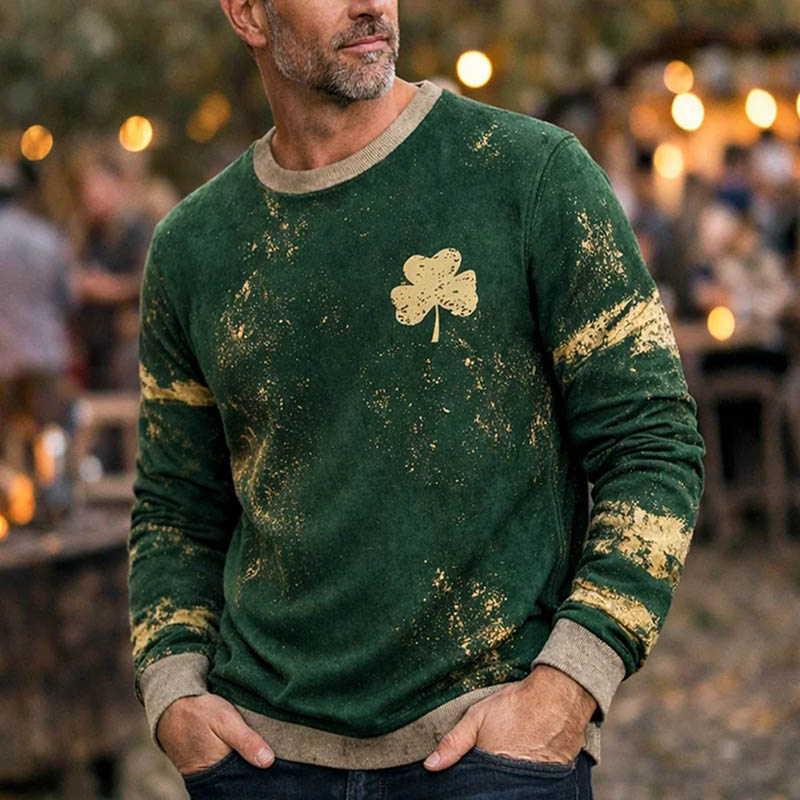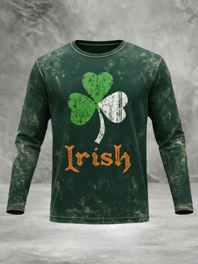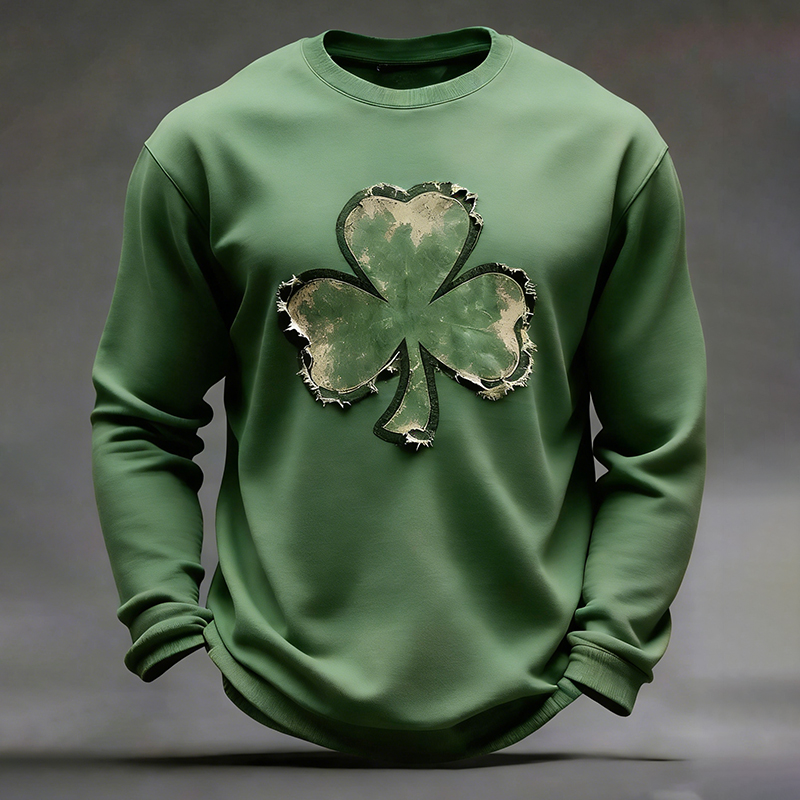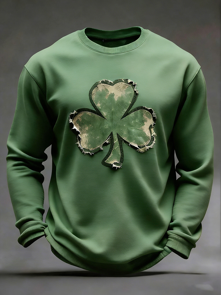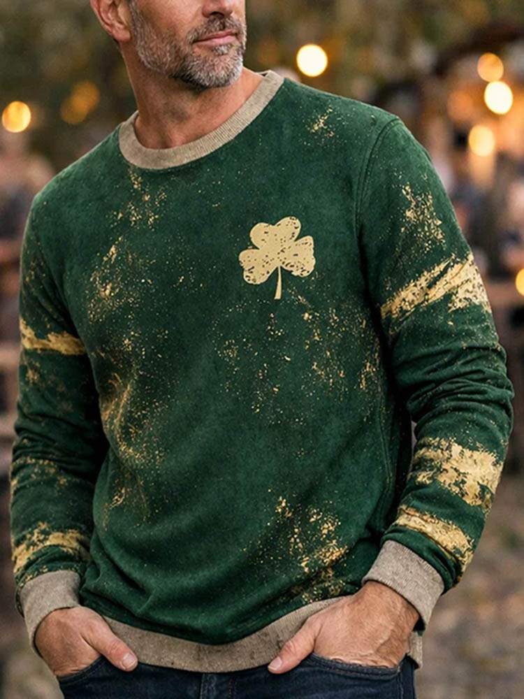 Men's Vintage St. Patrick's Day Shamrock Printed Sweatshirt