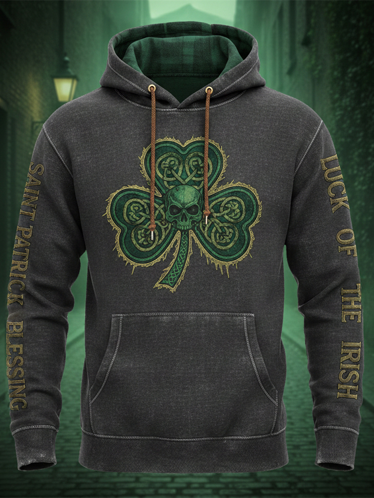 St. Patrick's Skull Clover Retro Men's Hooded Sweatshirt
