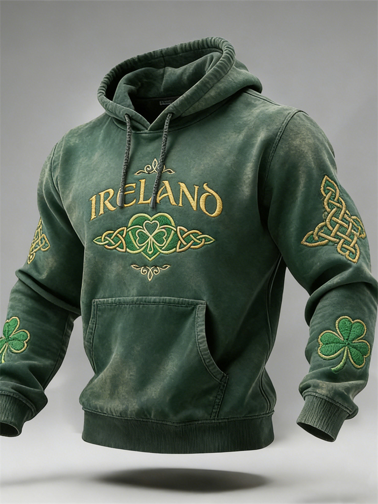 Men's St. Patrick's Ireland Shamrock Celtic Knot Washed Hoodie