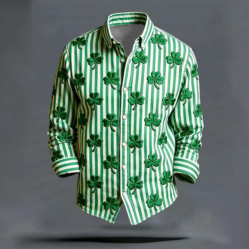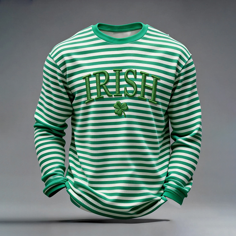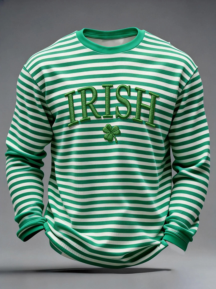 Men's St. Patrick's Day Shamrock Stripe Art Long-sleeved Shirt