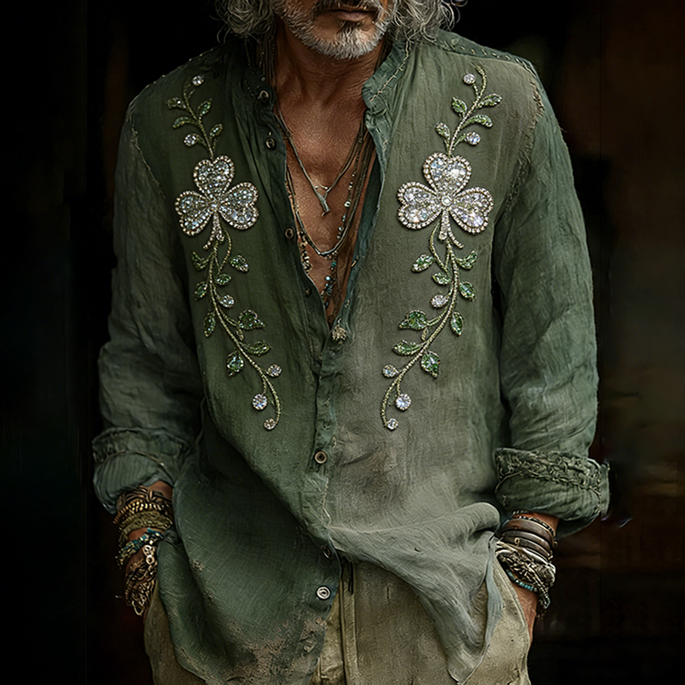 Men's Shamrock Gold Coin Celtic Art Long-sleeved Shirt