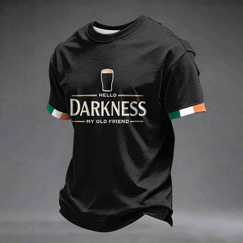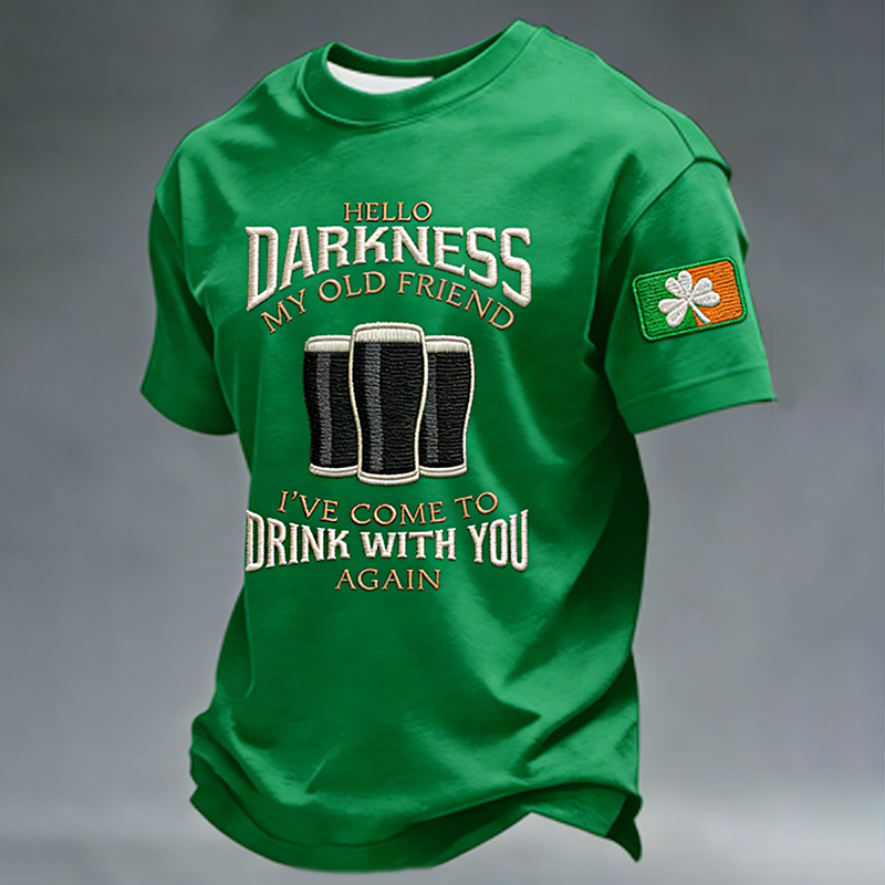Men's St. Patrick's Day Hello Darkness My Old Friend Pattern Crew Neck Short Sleeve T-shirt