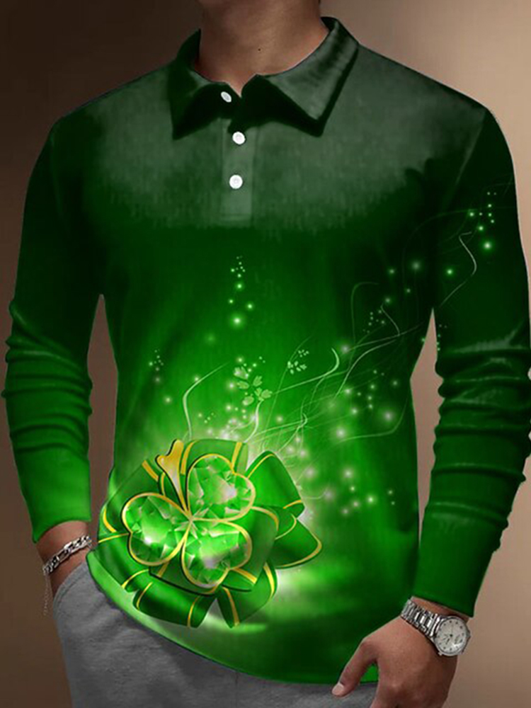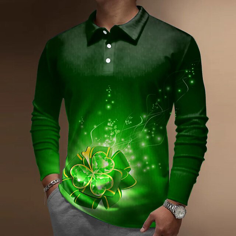 Men's St. Patrick's Day Clover Long Sleeve Polo Shirt