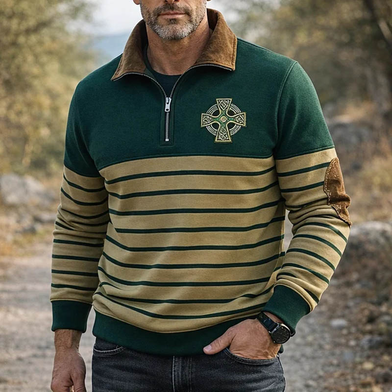 Men's Celtic Cross Stripe Half Zip Sweatshirt