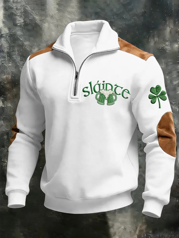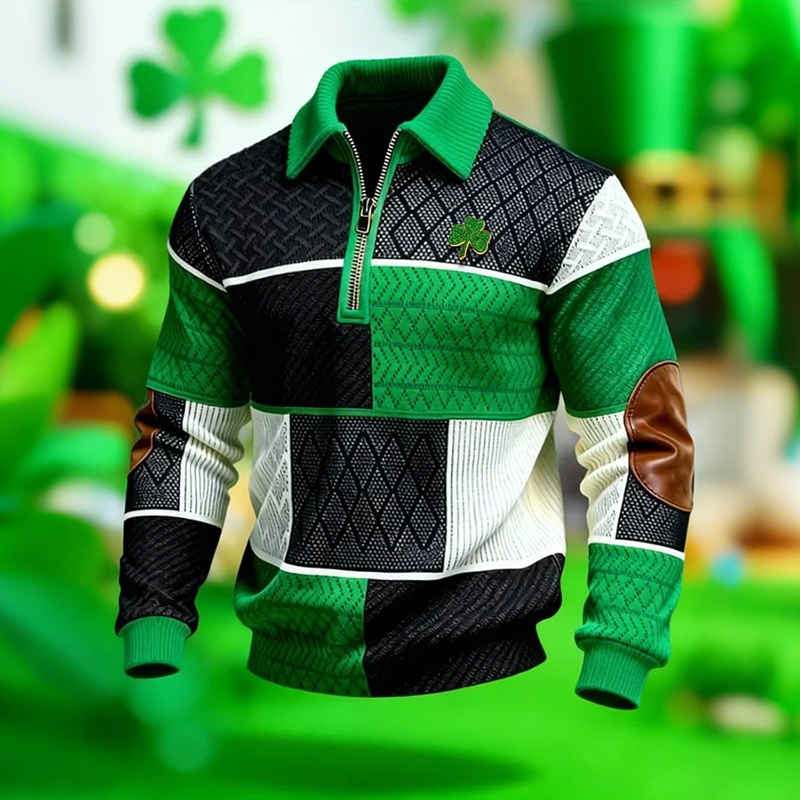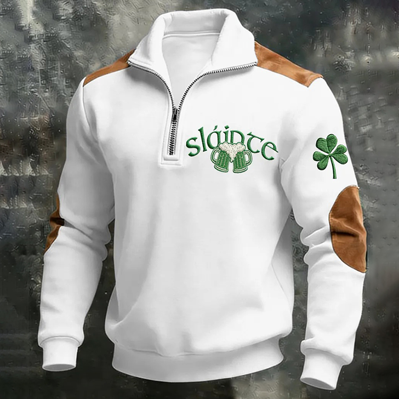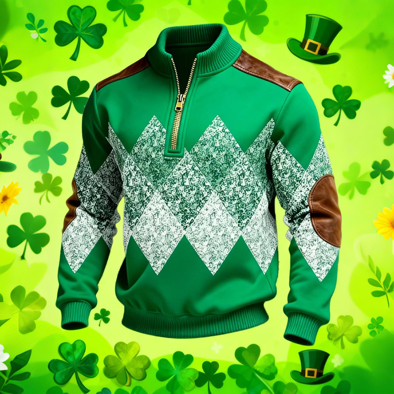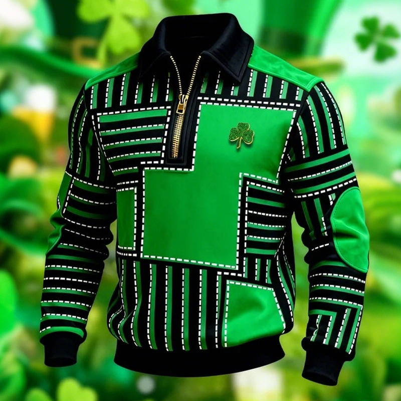 Men's Vintage St. Patrick's Day Print Casual Zipper Sweatshirt