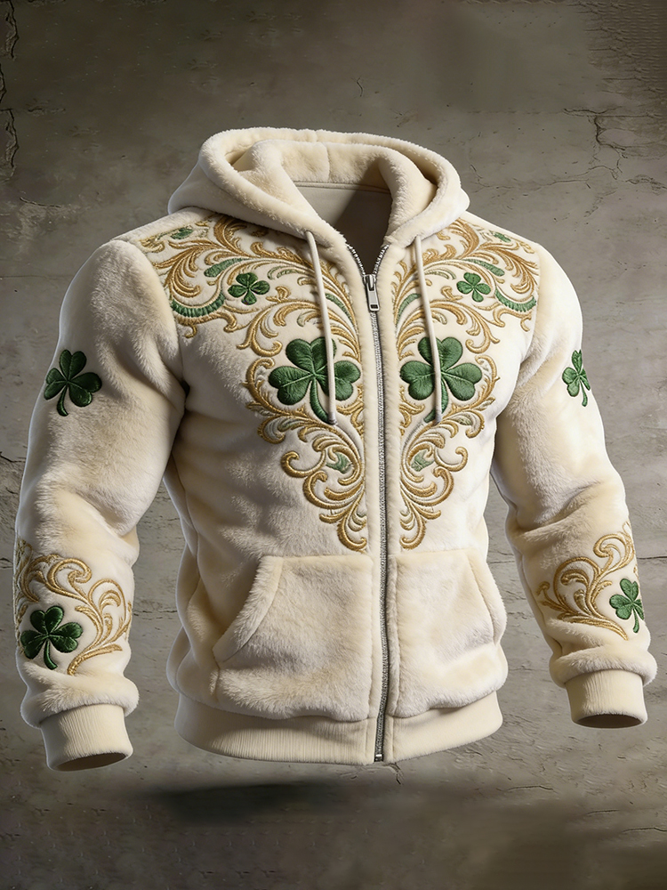 Men's St. Patrick's Day Shamrock Art Zip-up Hoodie