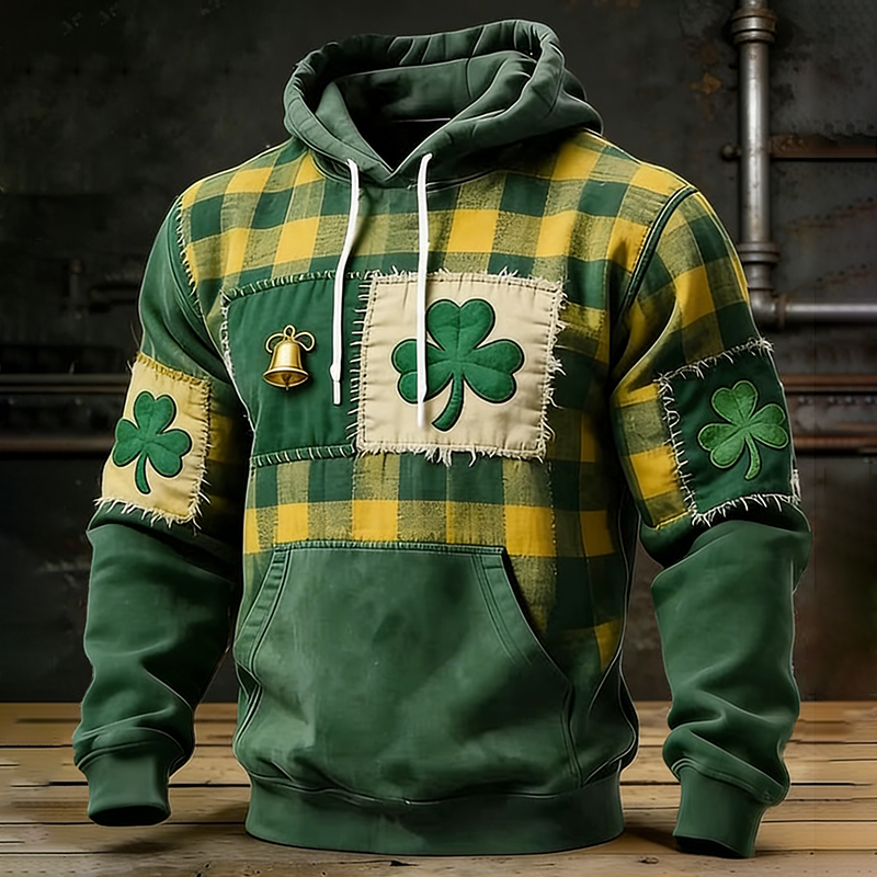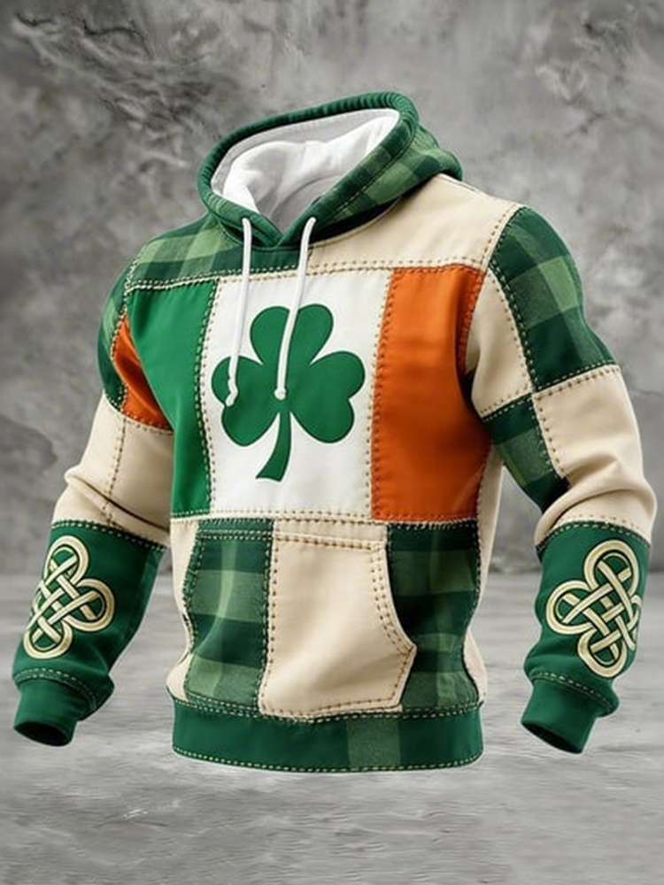 Men's Casual St. Patrick's Day Shamrock Patchwork Print Hoodie