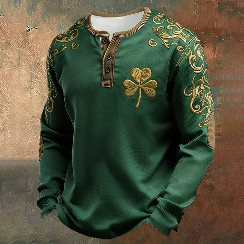 Men's St. Patrick's Day With Shamrock Long-sleeved Henley T-shirt