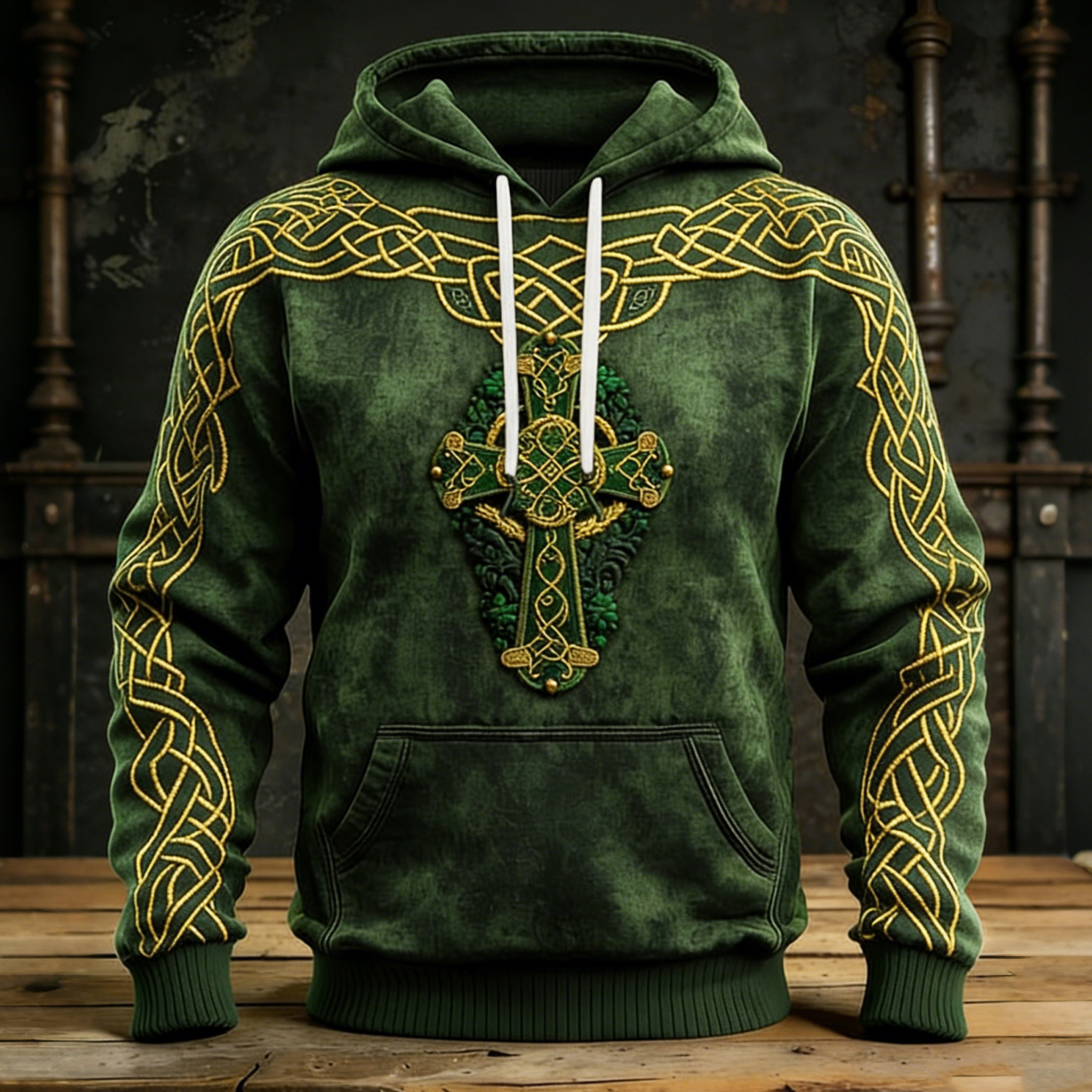 Men's St. Patrick's Day Vintage Patchwork Art Print Hoodie