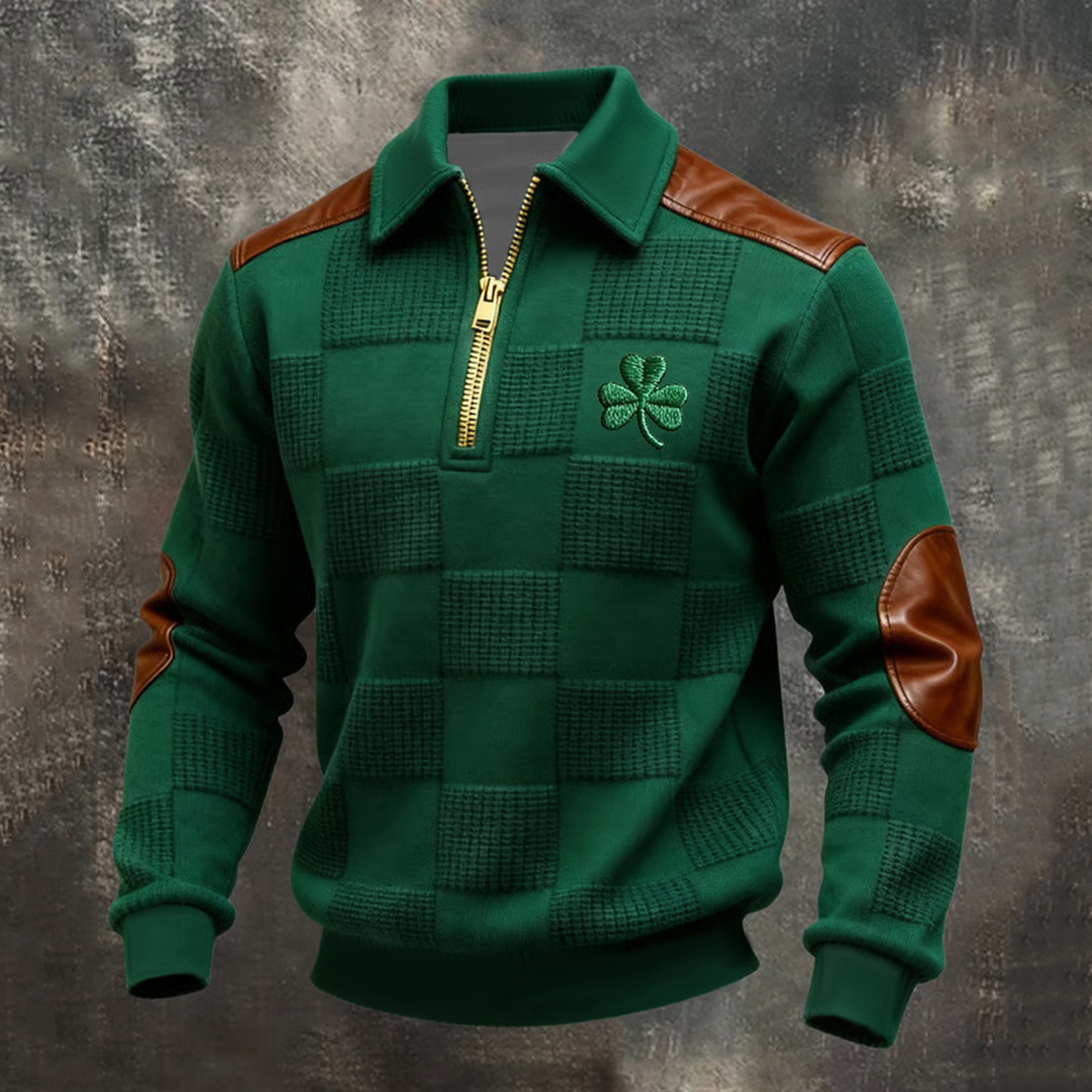 Men's St. Patrick's Clover Art Waffle Long-sleeve Sweatshirt