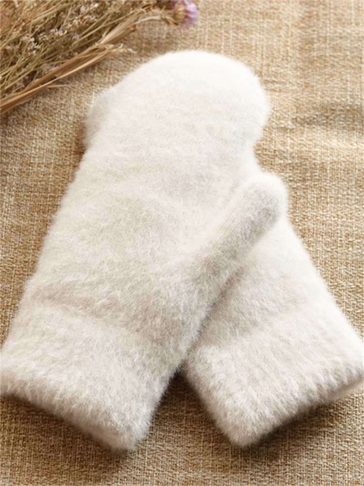Vintage Basic Fuzzy Cozy Knit Gloves