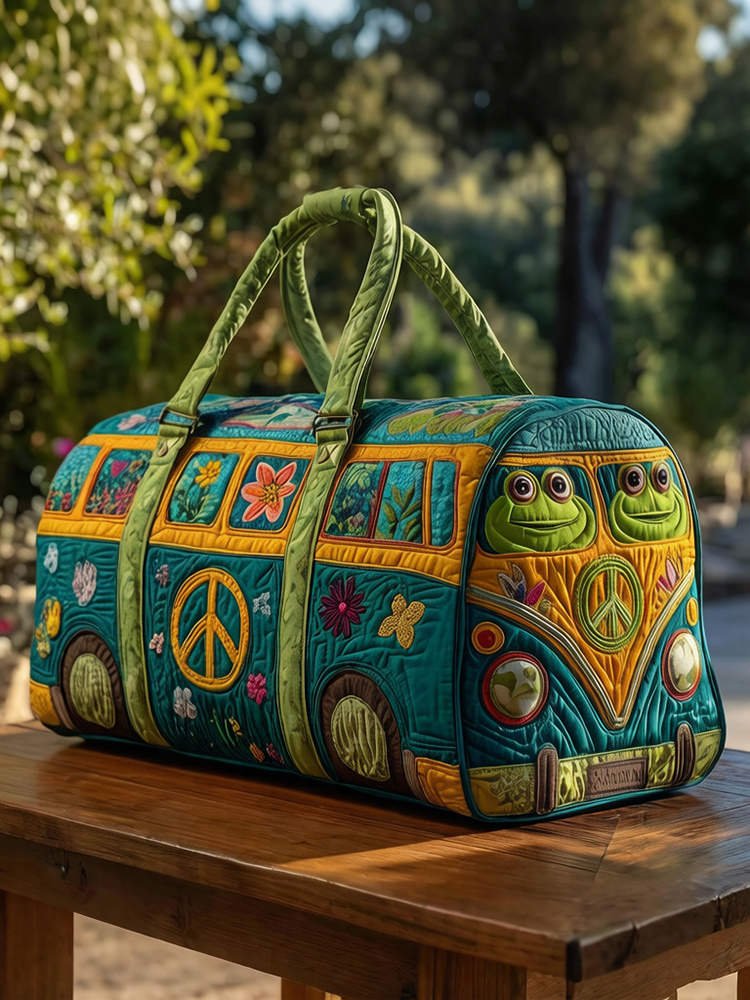 Hippie Van Frog Quilted Duffel Bag
