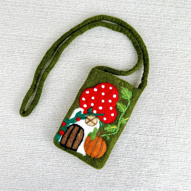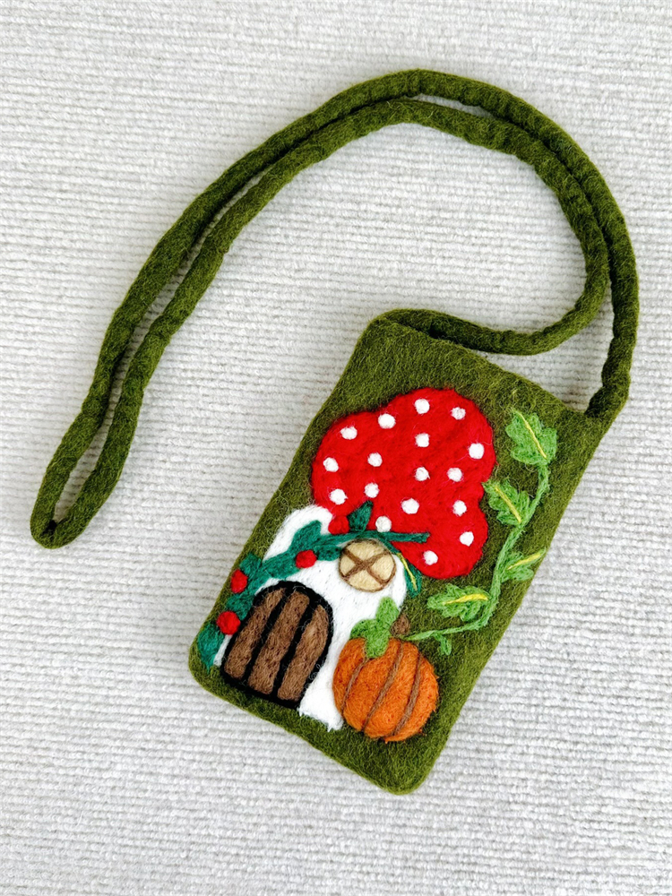 Vintage Forest Mushroom Cottage Handmade Felt Bag