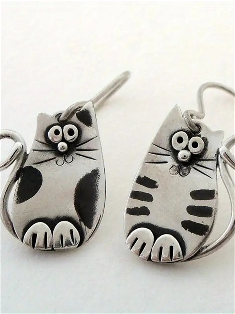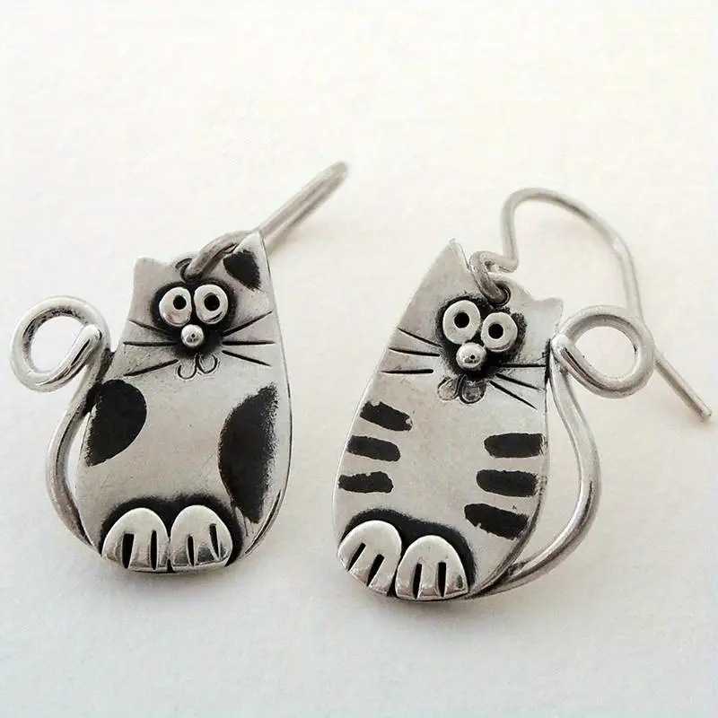 Vintage Cats Silver Carved Art Earrings