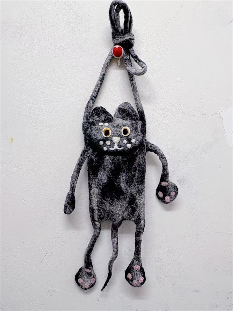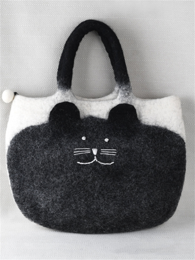 Lovely Black Cat Contrast Color Handmade Felt Handbag