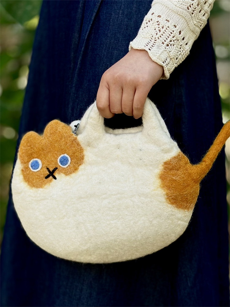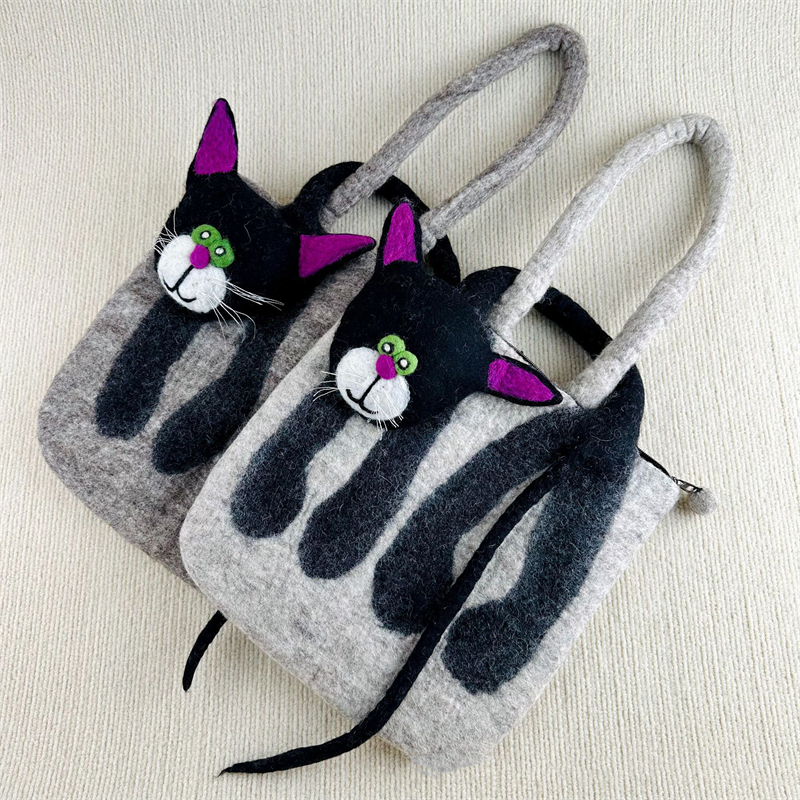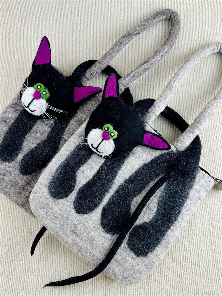 Lovely Cat Inspired Handmade Felt Handbag