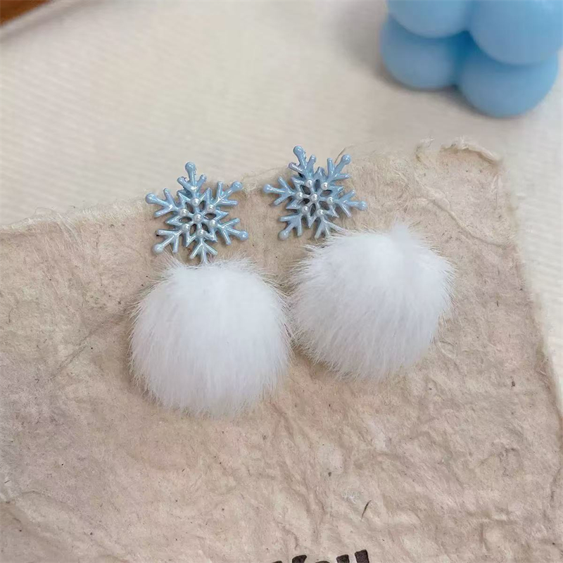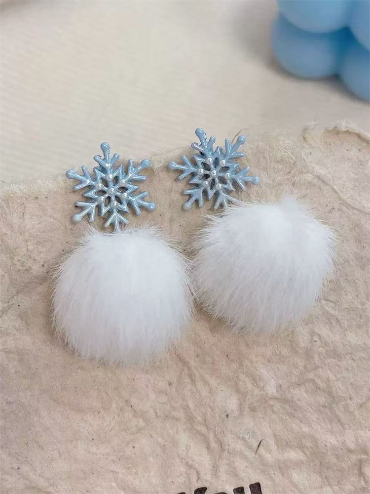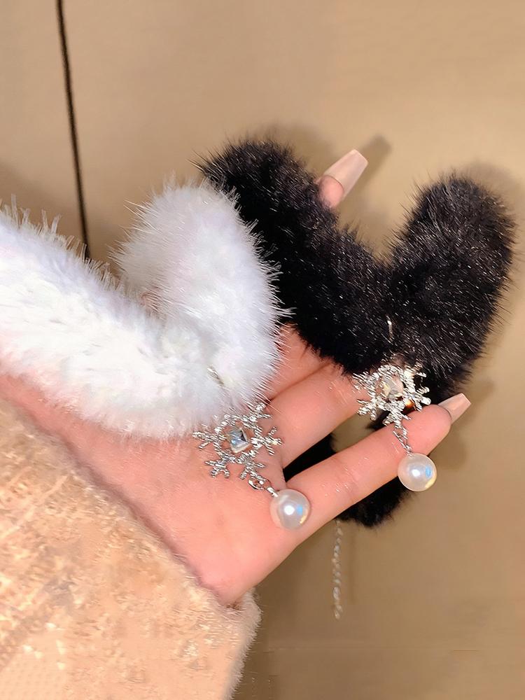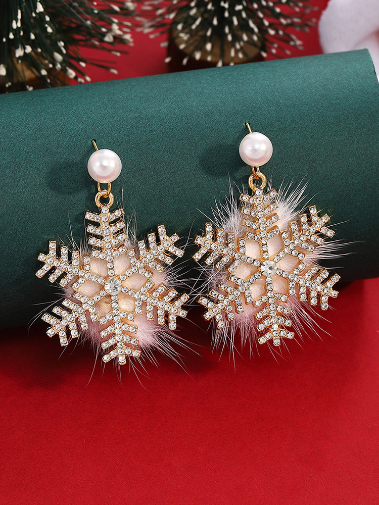 Christmas Plush Snowflake Rhinestone Pearl Earrings