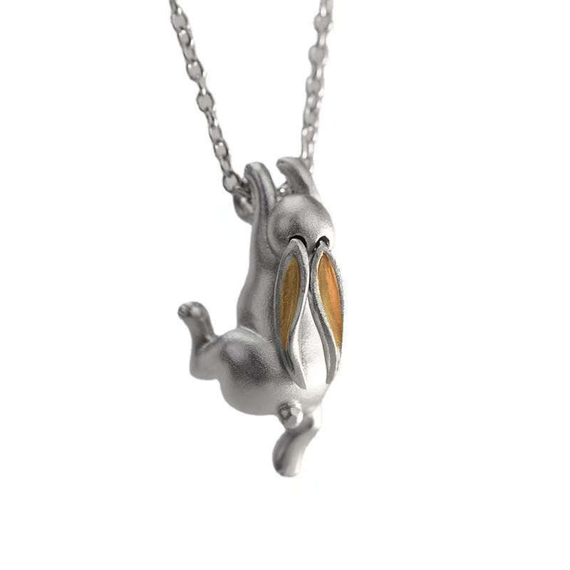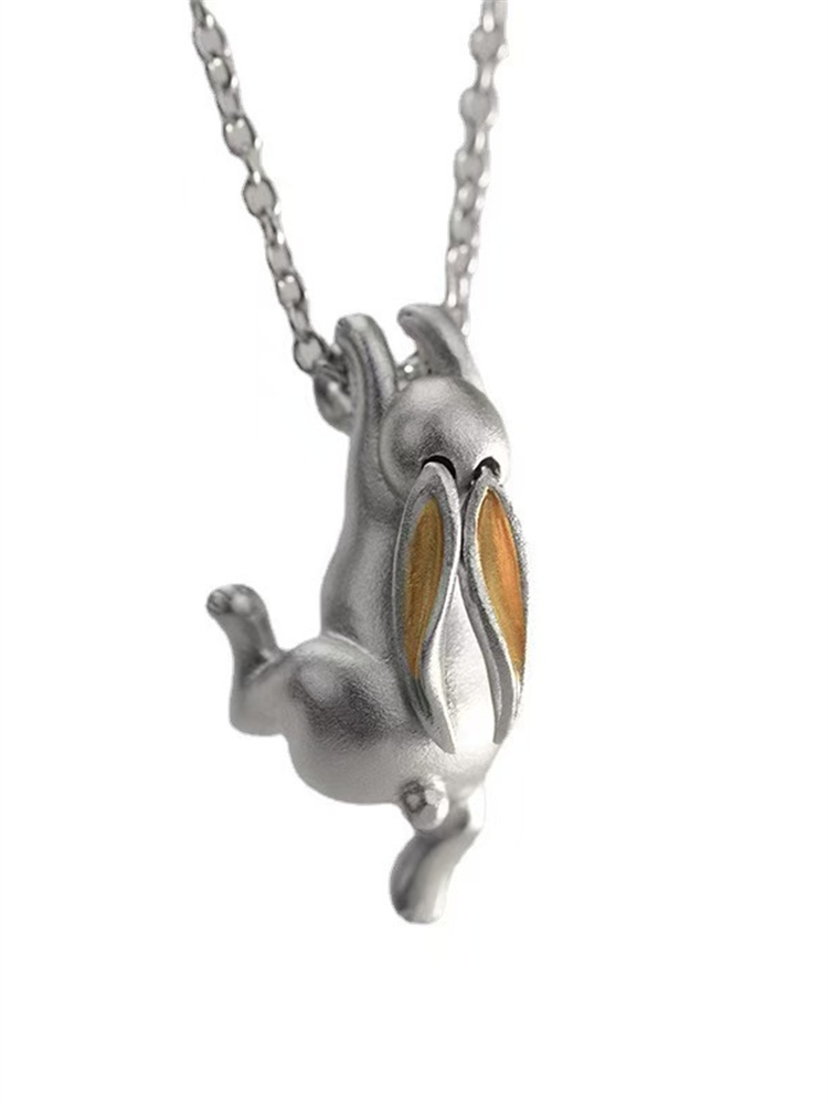 Funny Lovely Bunny Hanging Silver Pendant Necklace