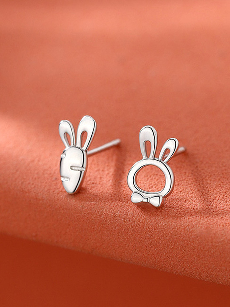 Lovely Bunny & Carrot Carved Silver Earrings