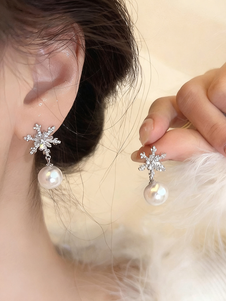 Christmas Zircon Snowflake Pearl Earrings