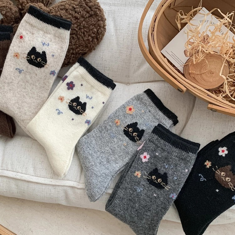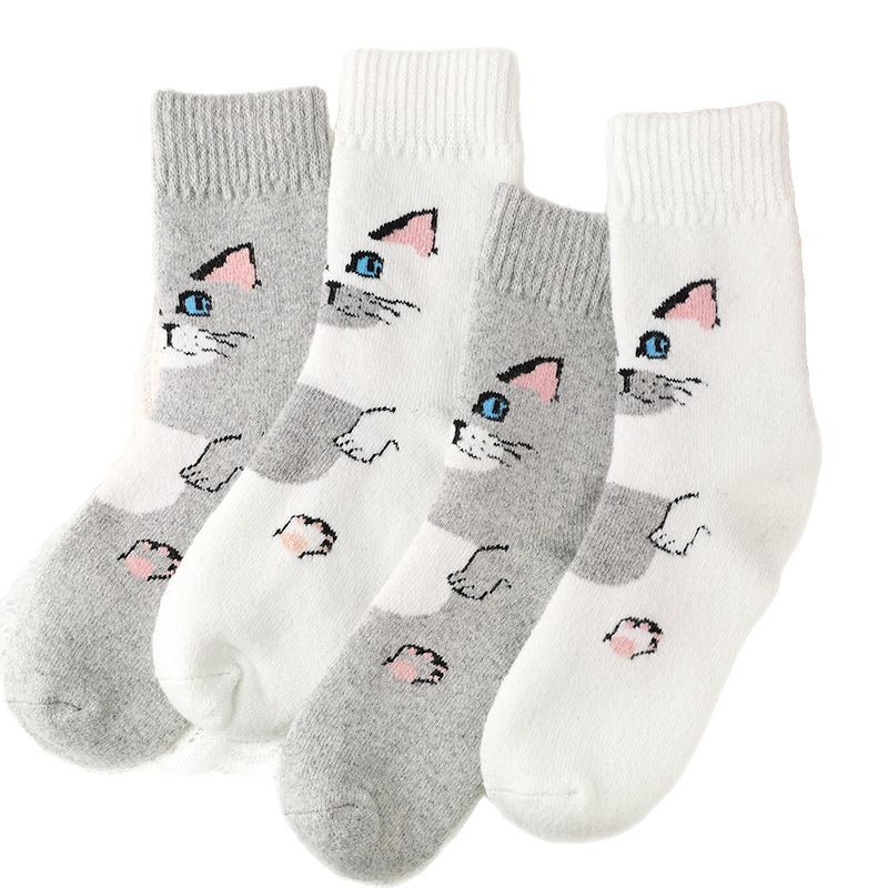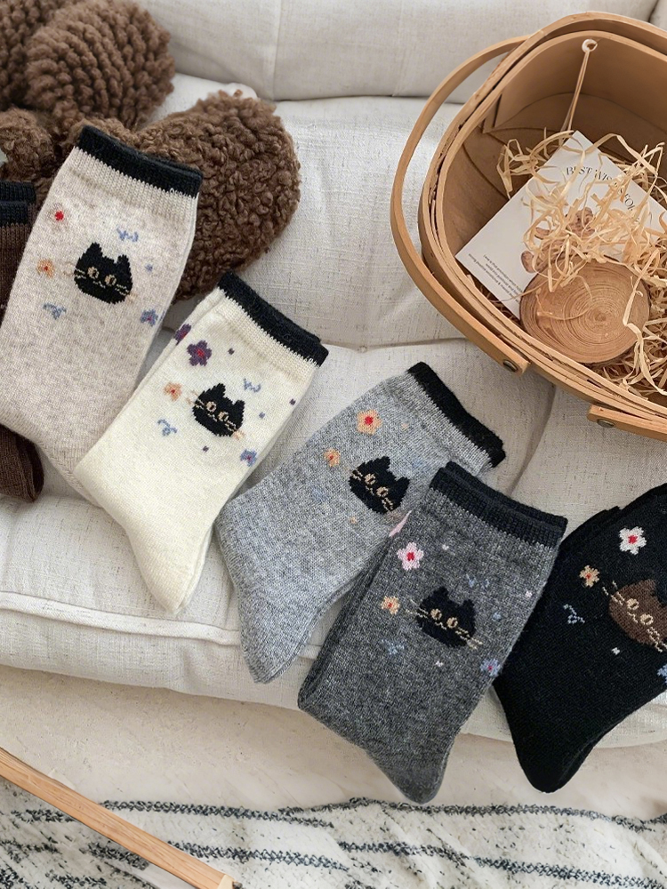 Cute Cartoon Cat Wool Mid-calf Socks