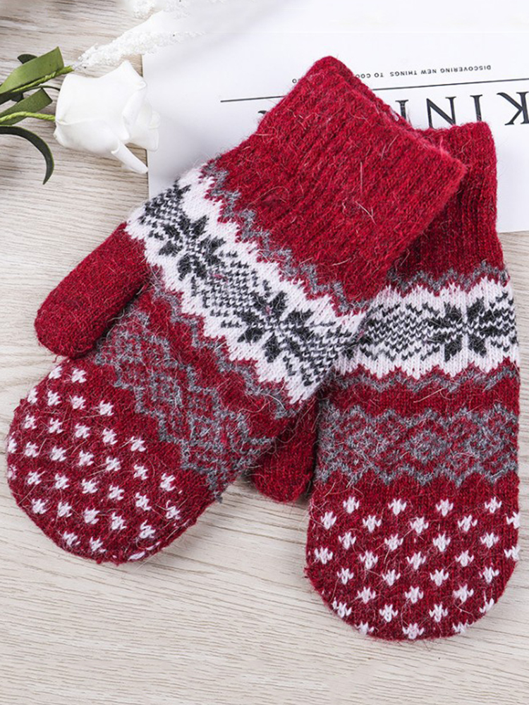 Vintage Snowflakes Fair Isle Cozy Knit Gloves