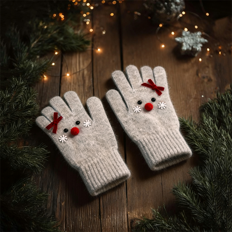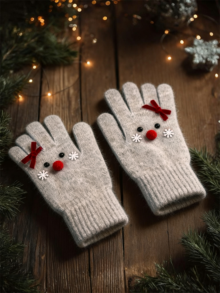 Christmas Lovely Reindeer Face Cozy Knit Gloves