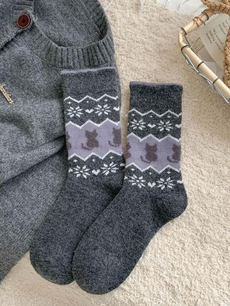 Fair Isle Style Kitten Wool Mid-calf Socks