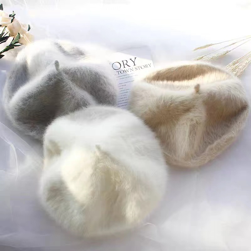 Vintage Basic Cozy Fuzzy Beret Hat
