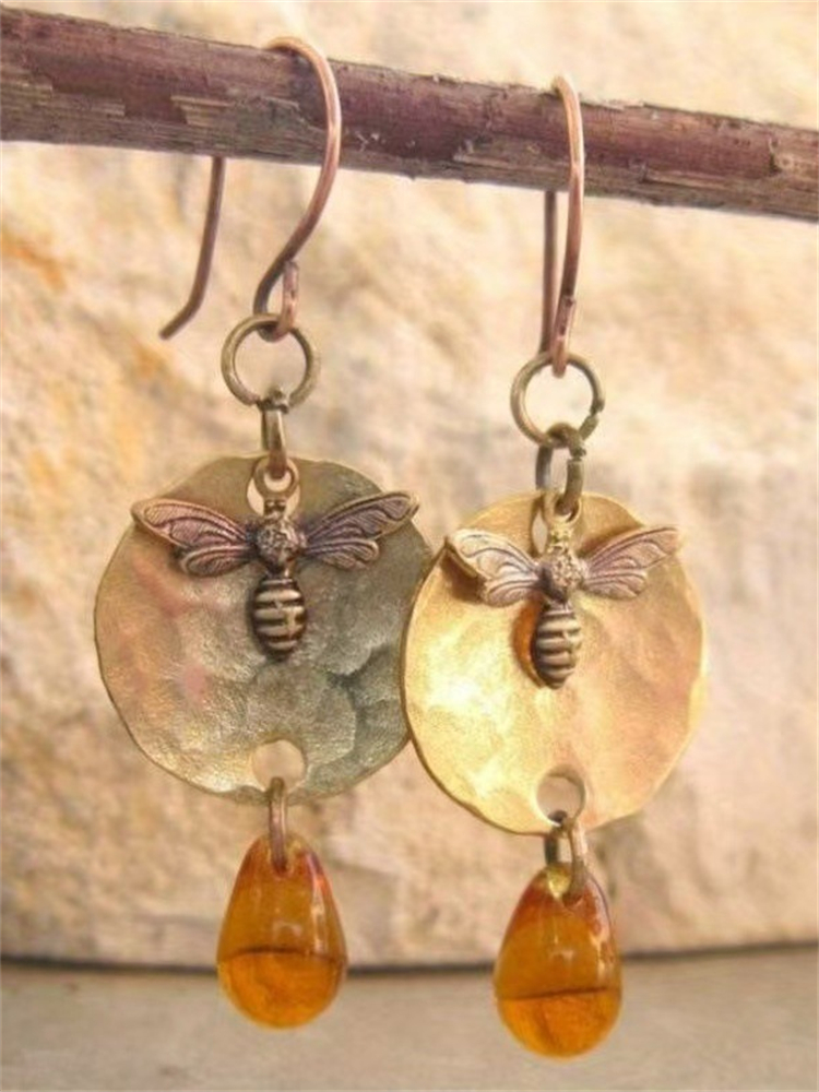 Vintage Boho Bees Inspired Amber Pendant Earrings