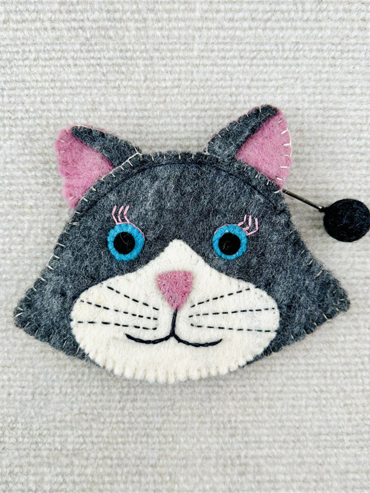 Lovely Cat Face Handmade Felt Patchwork Coin Purse