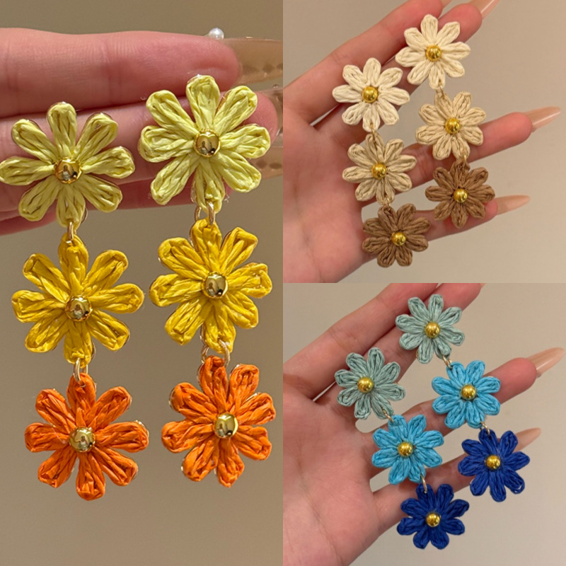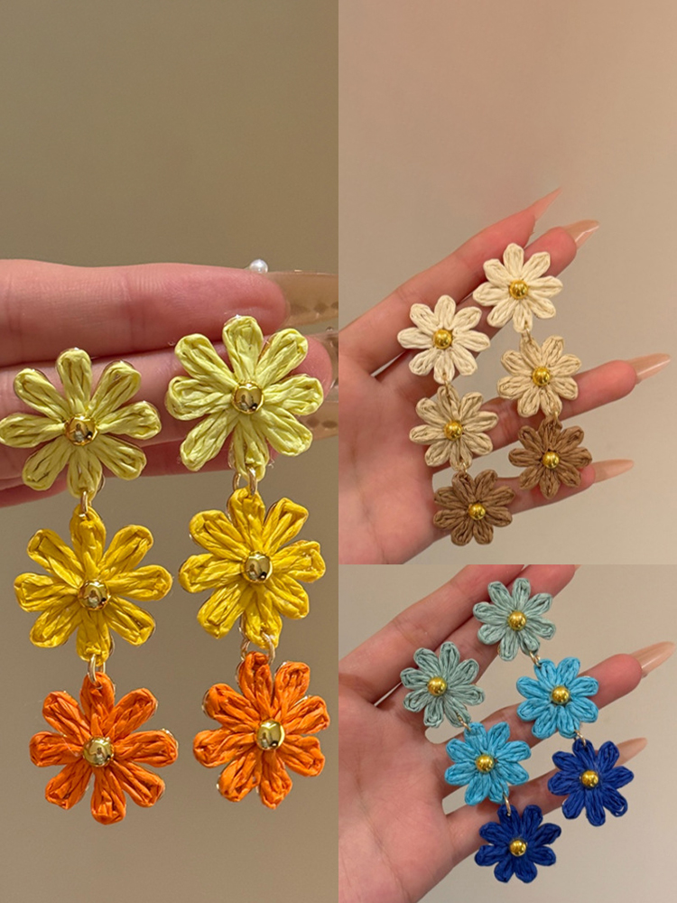 Colorful Straw Flower Holiday Tassel Earrings