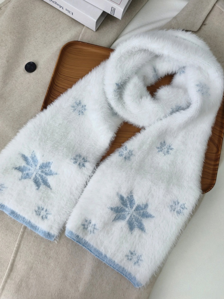 Fuzzy Christmas Snowflake Cozy Knit Scarf