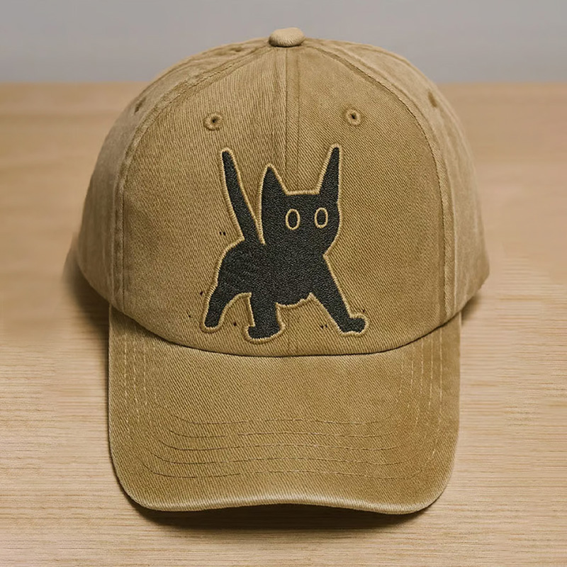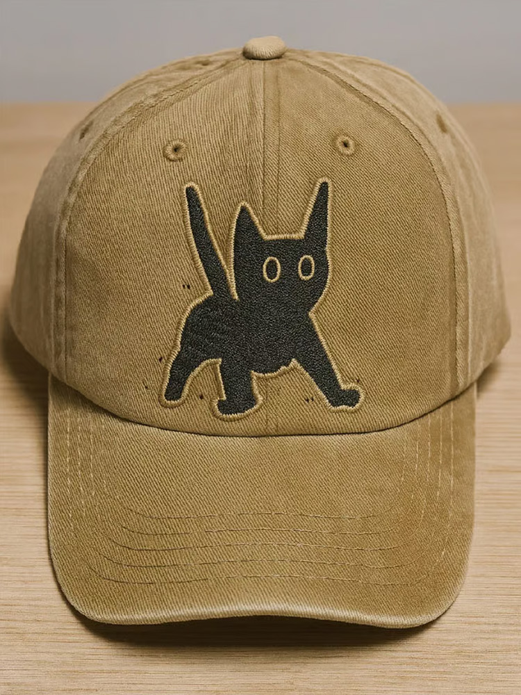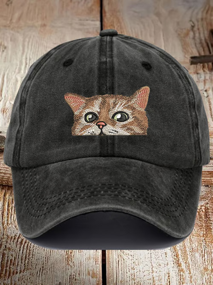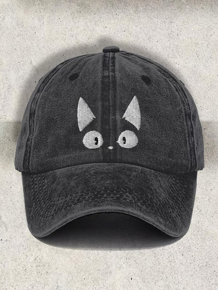 Unisex Distressed Washed Cute Cat Print Hat