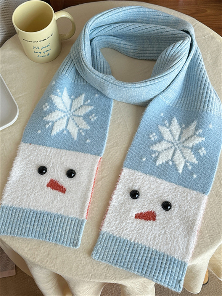 Lovely Snowman & Snowflakes Cozy Knit Scarf