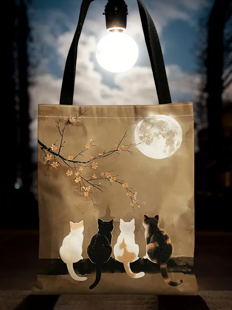 Japanese Cat Vintage Print Canvas Bag