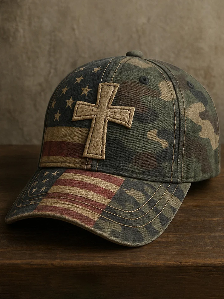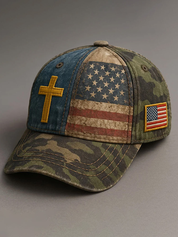 Faith Vintage American Flag Print Casual Hat