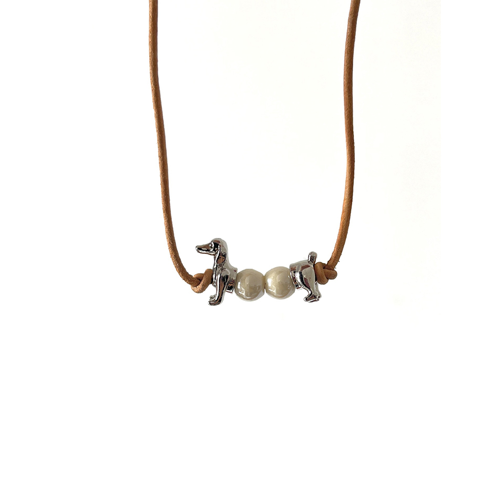 Vintage Cute Dachshund Split Beaded Necklace