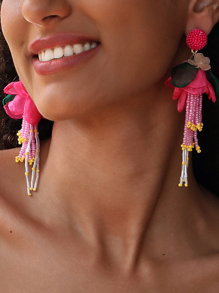 Bohemian Tassel Handmade Fabric Flower Earrings